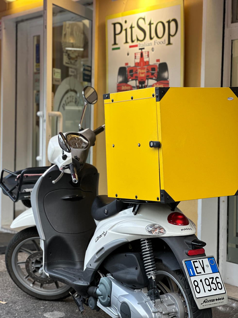 Først på aftenen får vi afregnet for opholdet og henter pizzaer i "Pit-stop".....PIZZASTEDET.....og så nyder vi aftenstunden i vognen, får indtastet koordinater til hjemturen på vores navigator og så er vi - efter en god nats søvn - parate til en lang køredag gennem Norditalien, Østrig og Tyskland - kilometer efter kilometer nordpå.